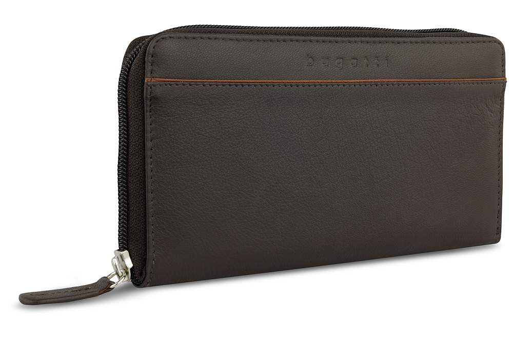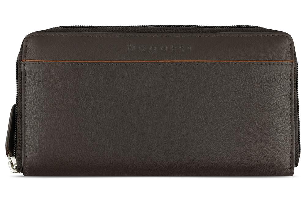 Кошелёк женский BUGATTI Banda, с защитой данных RFID, коричневый, кожа козы/полиэстер, 18,5х2х10 см 49133602