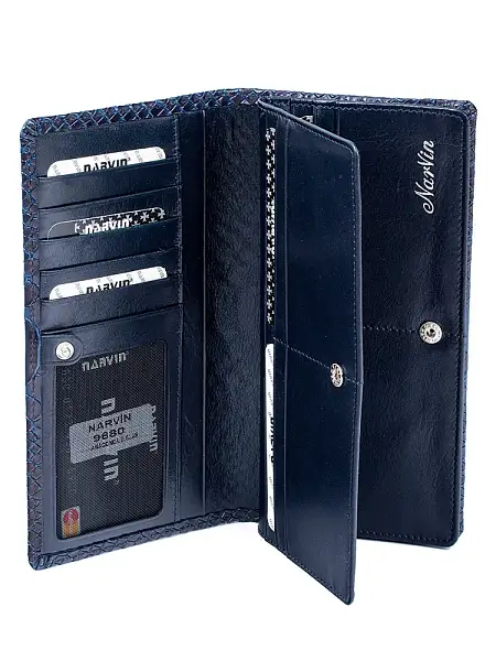 Женский кошелек NARVIN 9680-Anaconda D.Blue