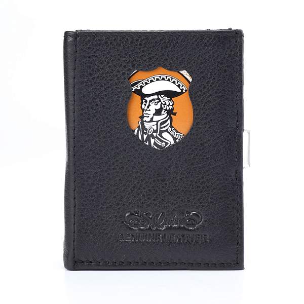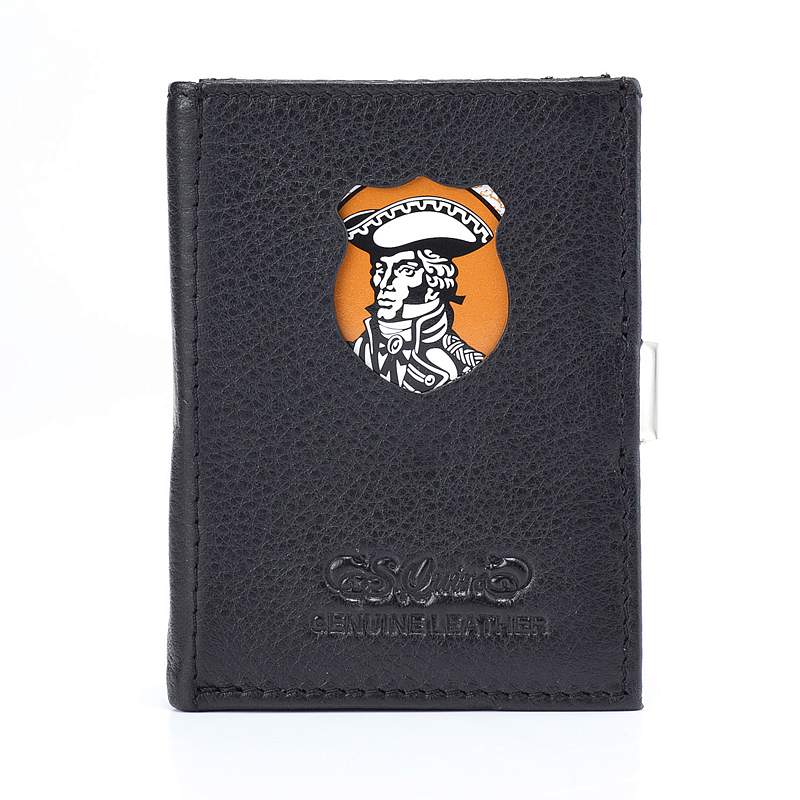 Кошелек S.Quire, натуральная кожа черная тисненая матовая 70*93*12 мм