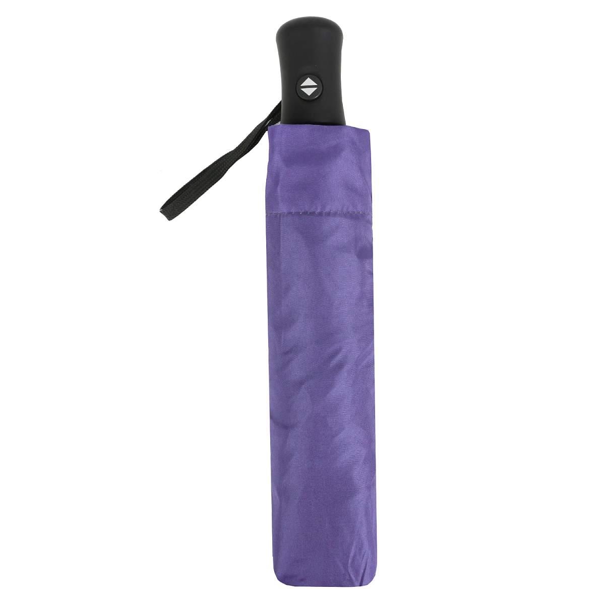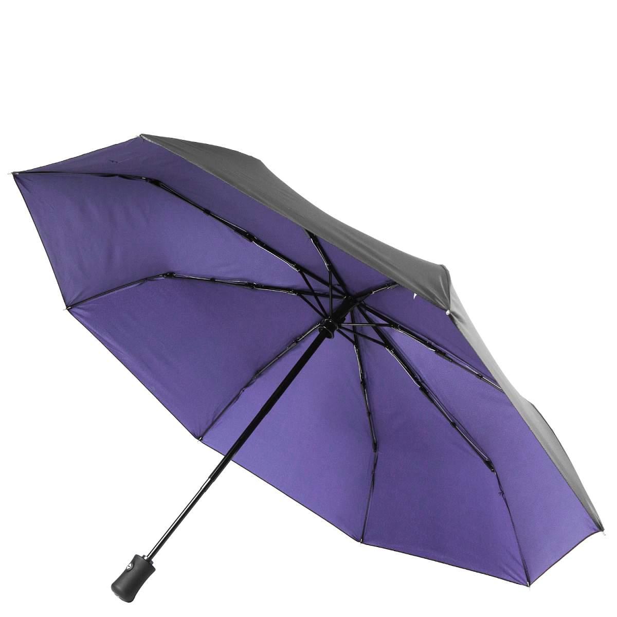 Двусторонний купол женского зонта-автомата FABRETTI выполнен из полиэстера с приятной матовой фактурой (эпонж). Верх купола в черном цвете с защитным покрытием от дождя и ультрафиолетовых лучей, внутренняя сторона зонта - в фиолетовом оттенке.